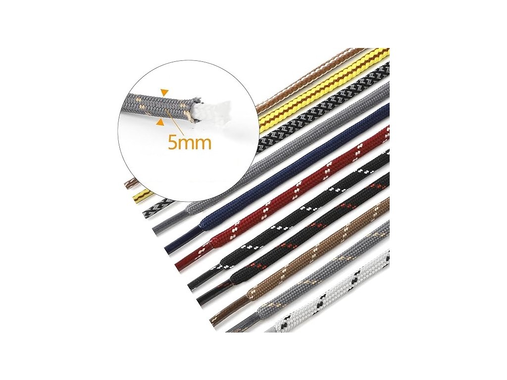 Prémiové kulaté tkaničky v univerzální barvě a délce dodají vašim oblíbeným pracovním botám nebo turistické obuvi nový vzhled.