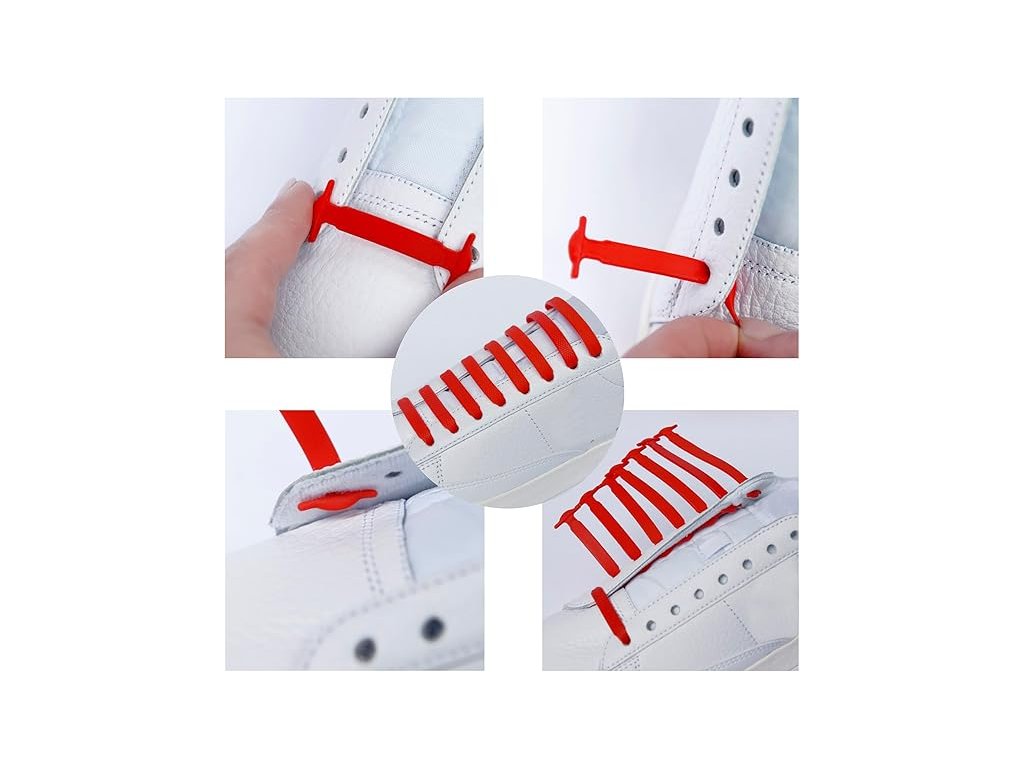 RECKNEY Tkaničky bez zavazování pro děti i dospělé, silikon, červené