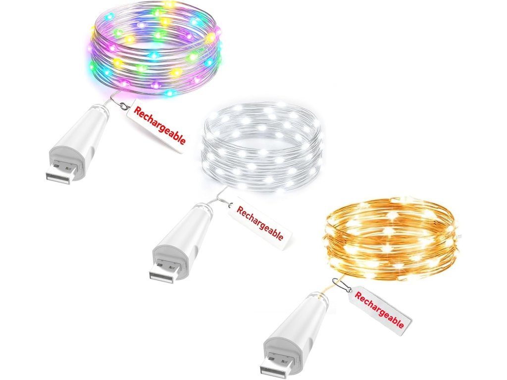 3ks LED dobíjecích řetězových světel, na baterie, 20 LED, 2 metry, 3 druhy
