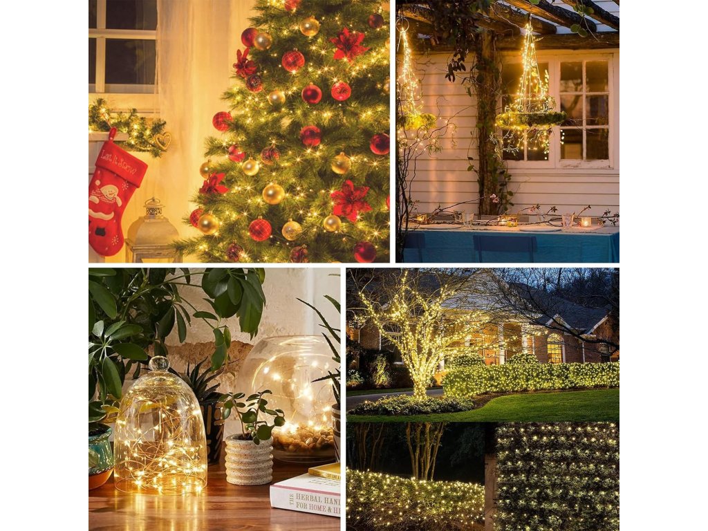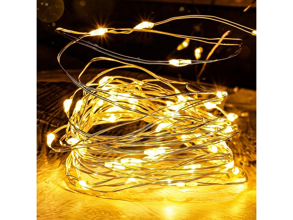 100 LED žárovek na kvalitním izolovaném měděném drátu 10 m. Ve tmě vytvoříte výraznou slavnostní a uklidňující atmosféru.