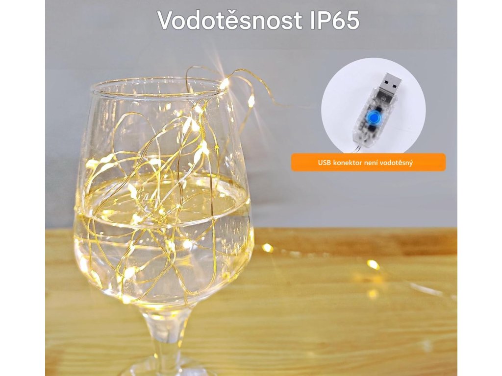 FREMON LED řetězové světlo 10 m napájené přes USB, 8 režimů, teplá bílá, IP65, dekorace