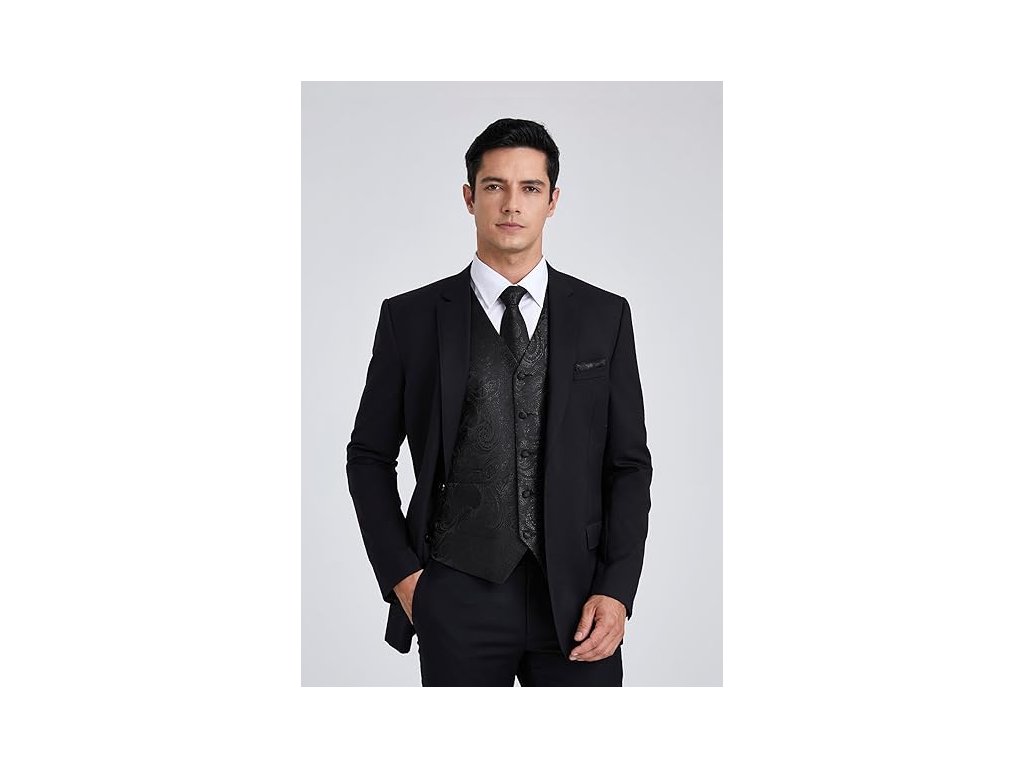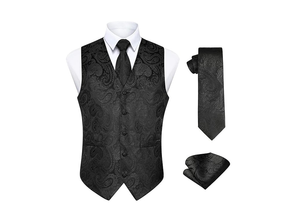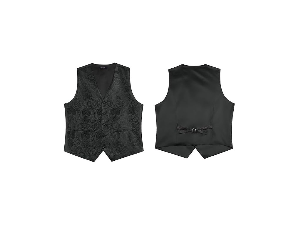 Pánská vesta má klasický jednořadý design s výstřihem do V, se kterým budete vypadat dobře ke každé příležitosti. Pánská vesta je dodávána s kravatou a kapesníkem pro dobrý vzhled.