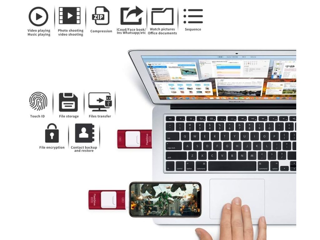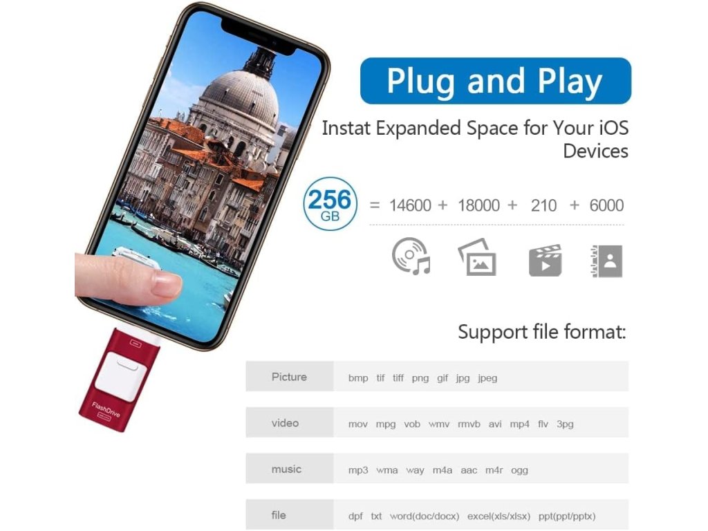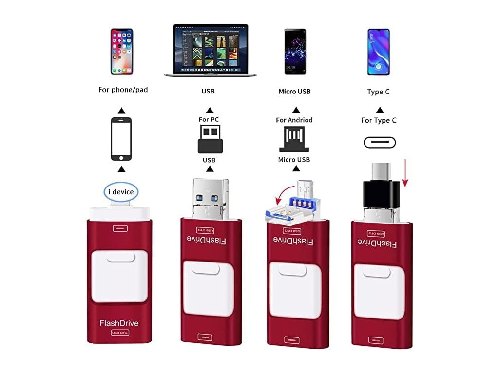 USB flash disk 256 GB pro telefon, iOS/Android/PC, červená, OTG