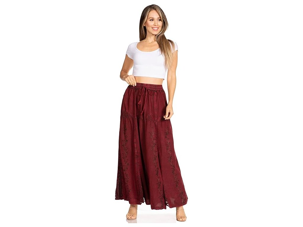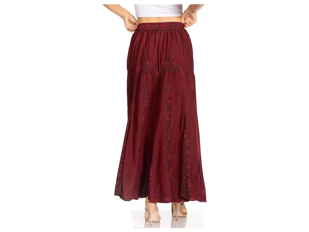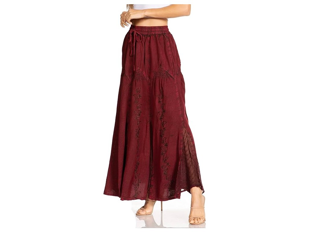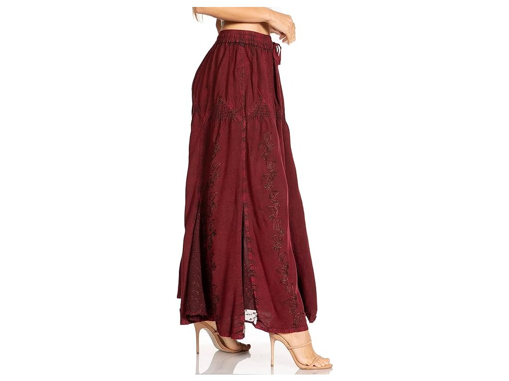 Sakkas Olivia dámská maxi cikánská dlouhá sukně s elastickým pasem a krajkou, burgundská