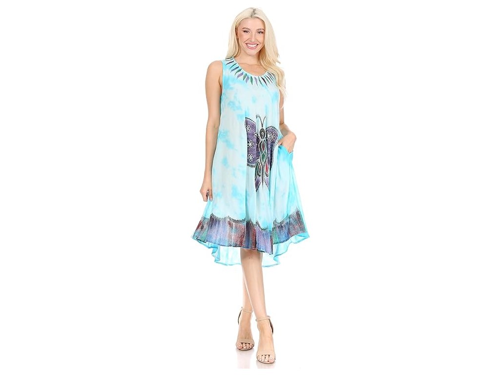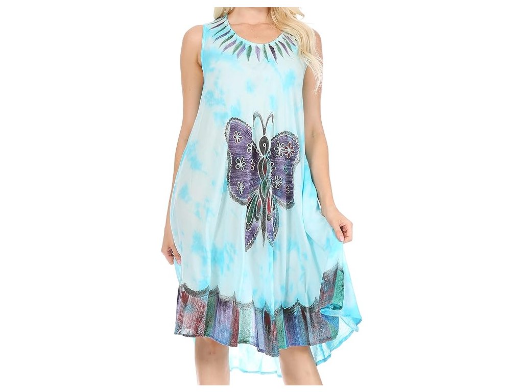 Šaty bez rukávů s vyšívaným motýlem, uvolněným střihem a měkkým zbarvením viskózové látky v krásných barvách.