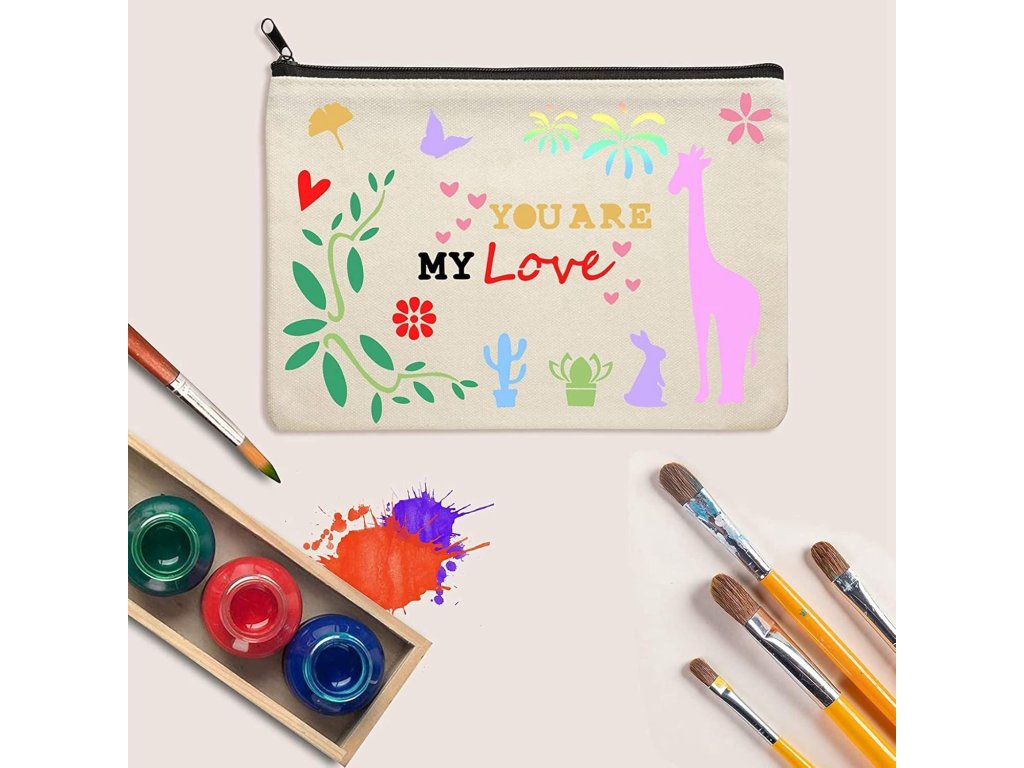 Na odolné plátno s prázdným pozadím můžete kreslit barevnými tužkami nebo barvami. Vymalujte si tyto tašky se svým dítětem, vytvořte si vlastní sáčky.