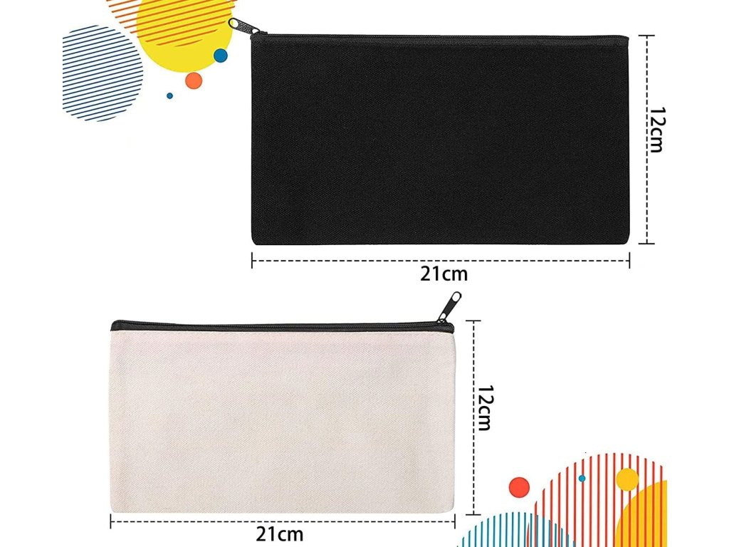 Balení obsahuje: 20 kusů prázdných plátěných tašek, mezi nimi 10 kusů béžovobílých tašek s černým zipem a 10 kusů černých tašek s černým zipem.