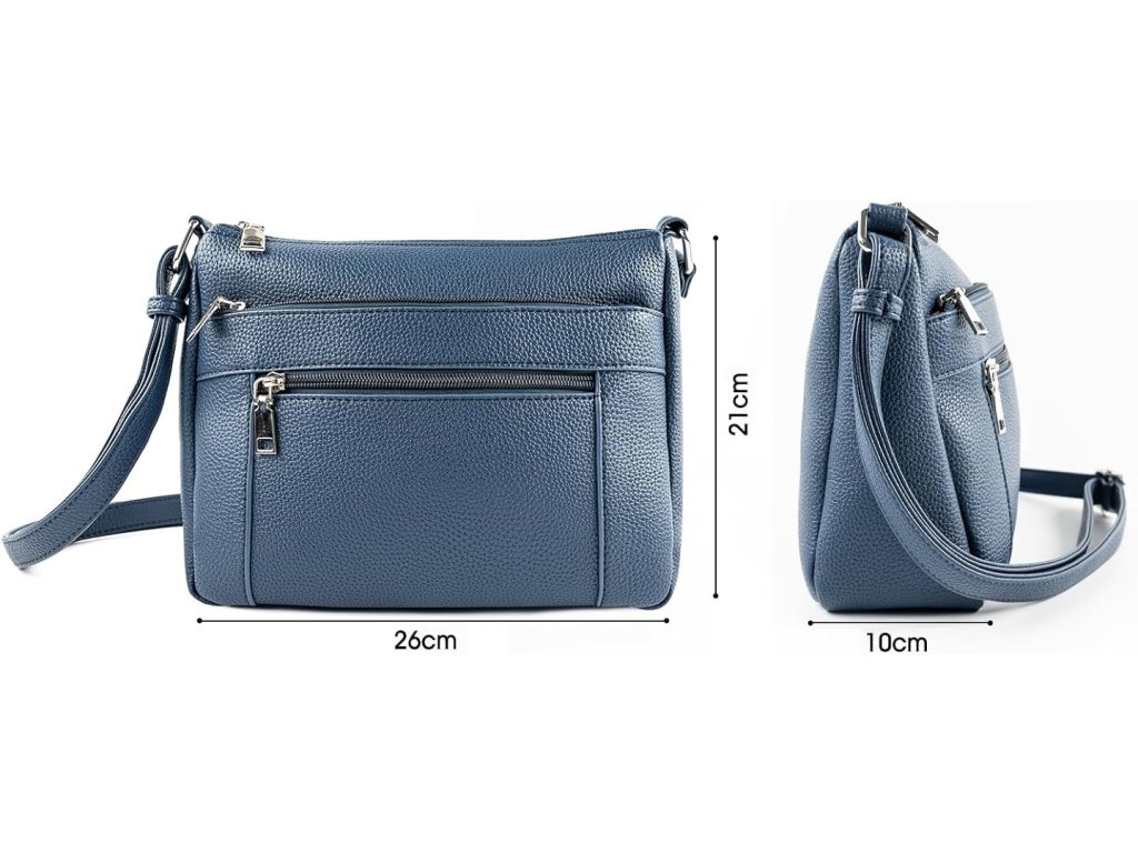 Nastavitelný kožený ramenní popruh 2 cm x 135 cm umožňuje individuální přizpůsobení, zatímco střední velikost s rozměry 21 cm x 26 cm x 10 cm je dostatečně velká, aby mohla uložit to nejnutnější, aniž by byla objemná.