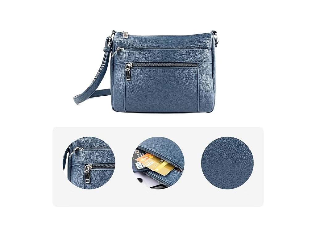 Se třemi kapsami na zip vpředu a jednou vzadu nabízí tato kabelka přes rameno dostatek místa pro důležité věci, jako je peněženka, mini deštník, iPad Mini, telefon, tužky a další.