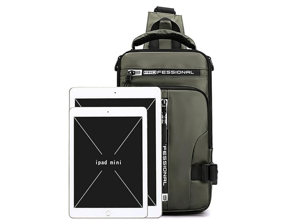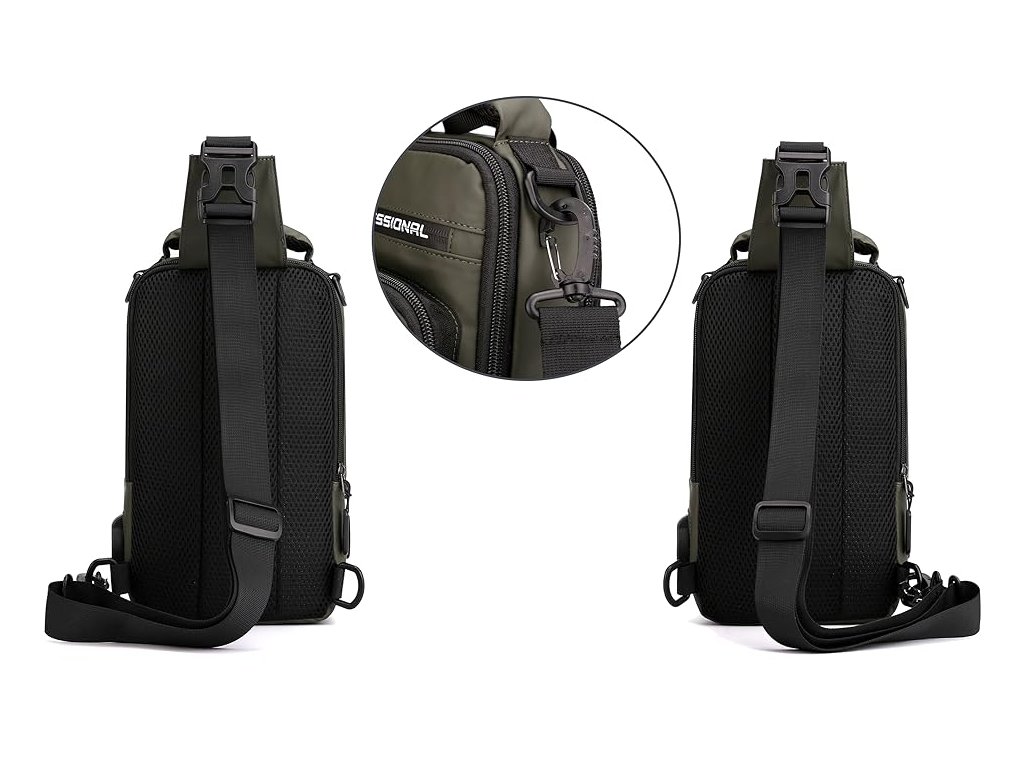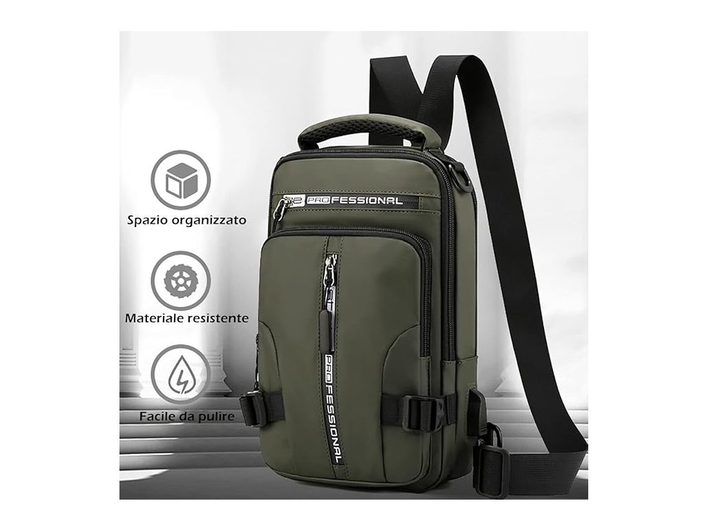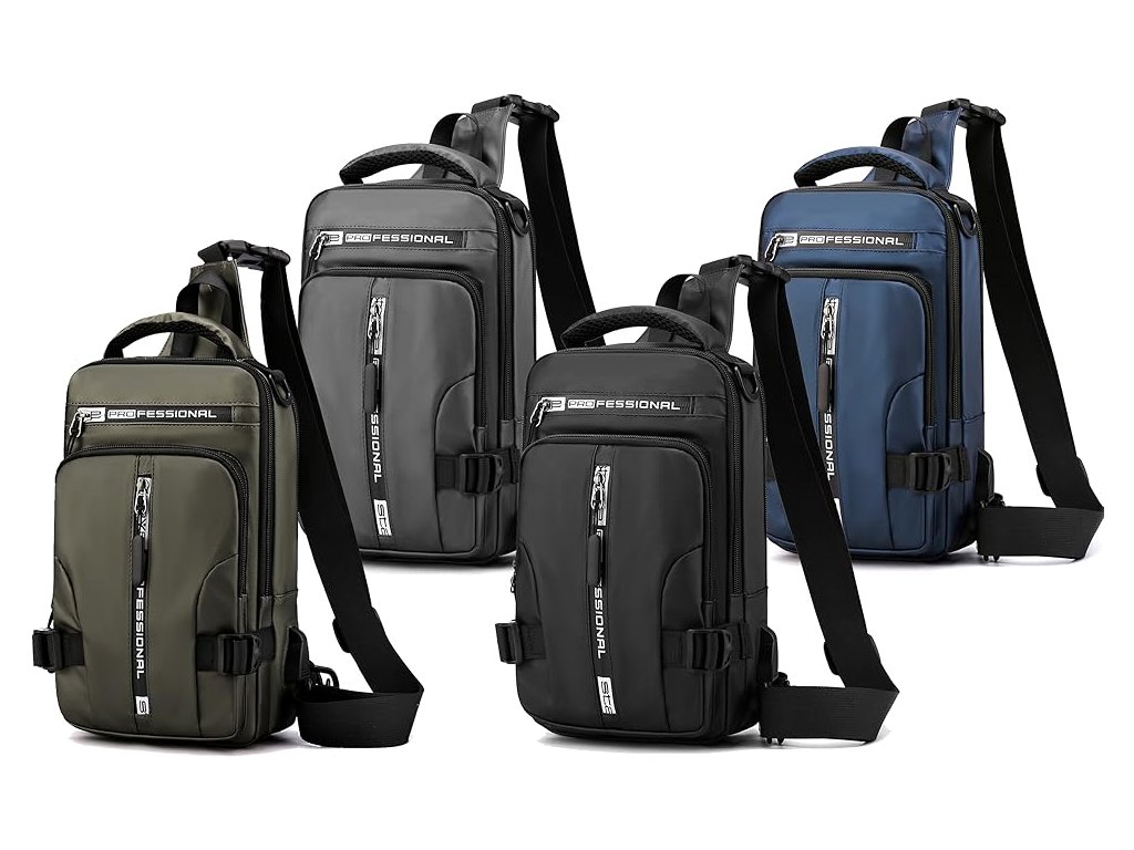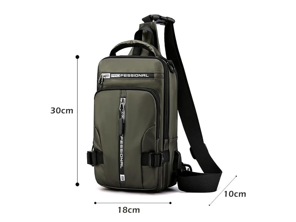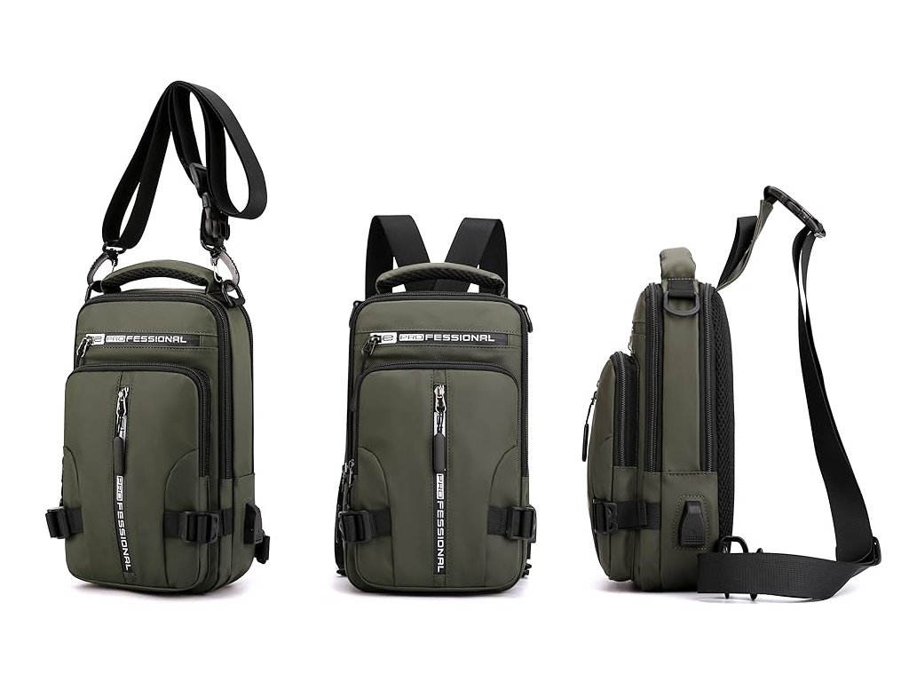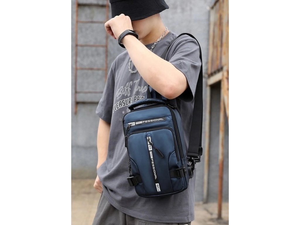Nastavitelný ramenní popruh umožňuje nosit tašku jako tašku přes rameno (vlevo i vpravo), náprsní tašku nebo batoh.