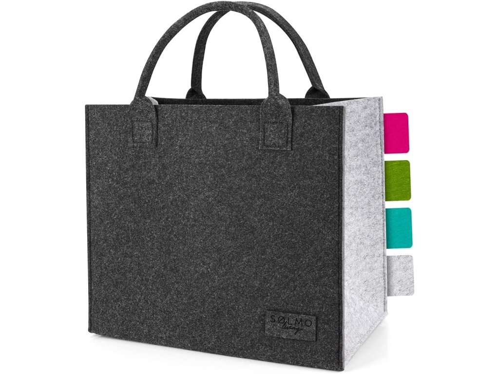 Sølmo Plstěná nákupní taška s uchem, skládací, černošedá