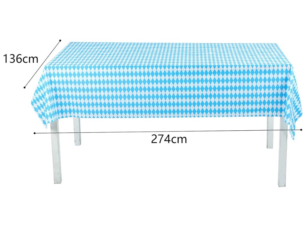 Ubrus měří přibližně 274 x 137 cm. Tento ubrus Oktoberfest s ikonickým modrobílým kostkovaným vzorem je perfektním ústředním bodem pro oslavy Oktoberfestu.