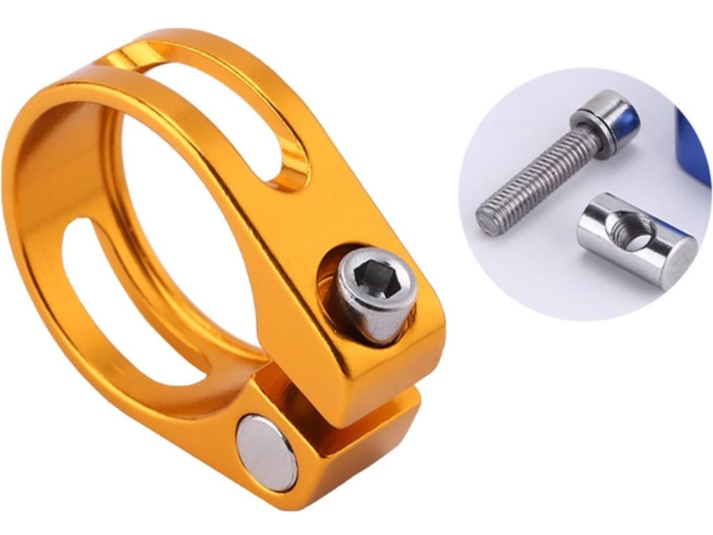 Příslušenství nebo náhradní díl pro upevnění sedla jízdního kola. Vnitřní průměr objímky sedlovky je 31,8 mm, vhodná pro průměry sedlové trubky 27,2/28,6 mm.