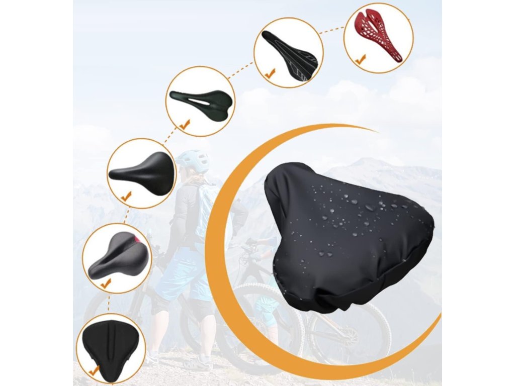 Potah na sedadlo jízdního kola je vyroben z nepromokavé tkaniny Oxford, která je pevná a má dobrou odolnost proti roztržení.