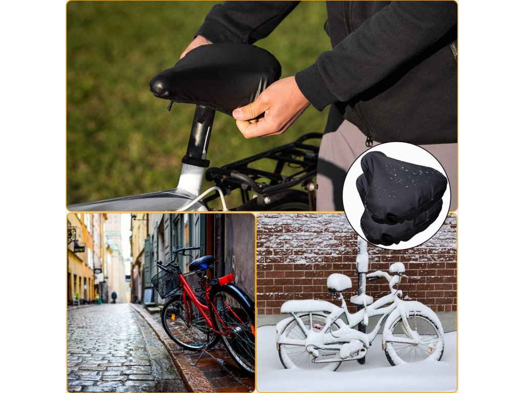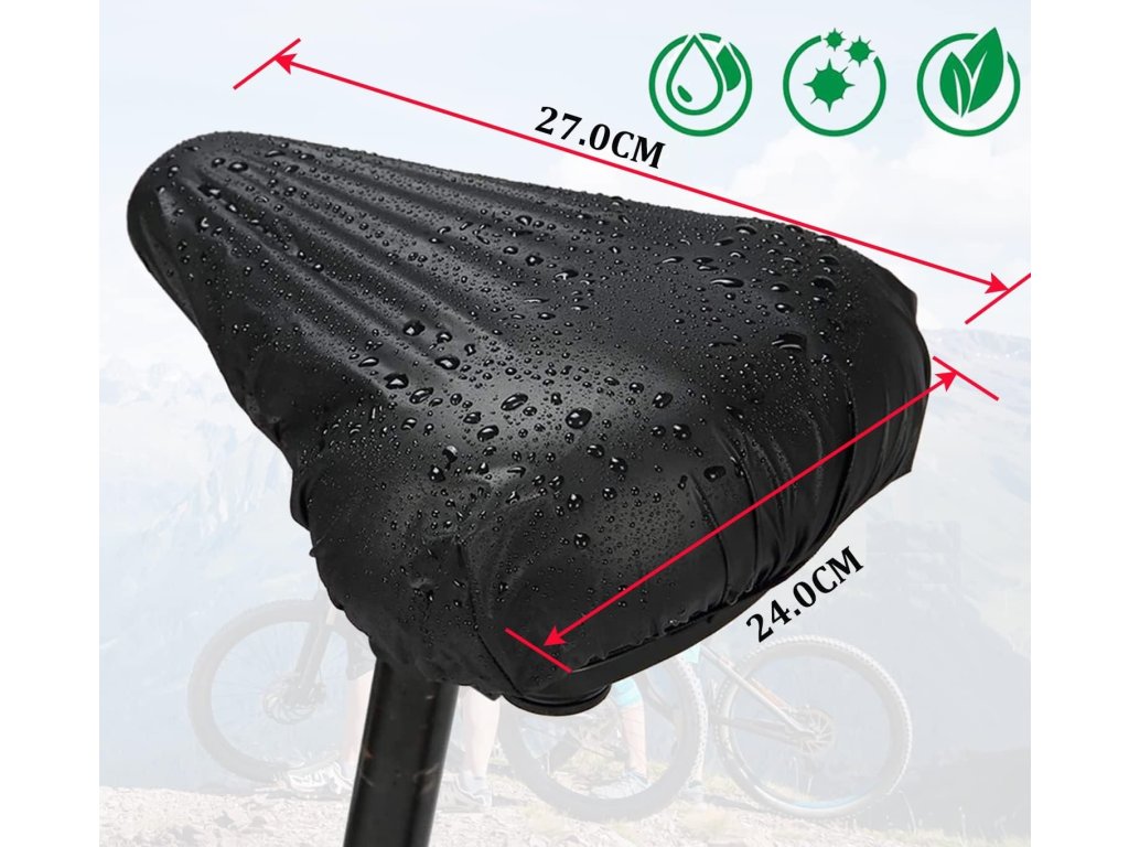 Chrání sedadlo jízdního kola před vodou, sněhem a prachem.