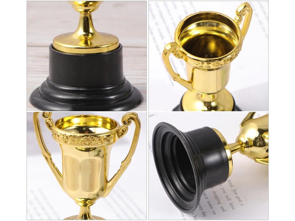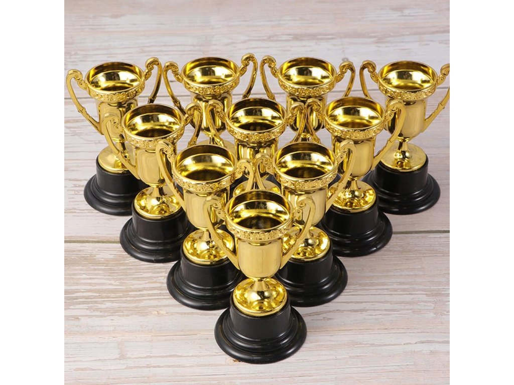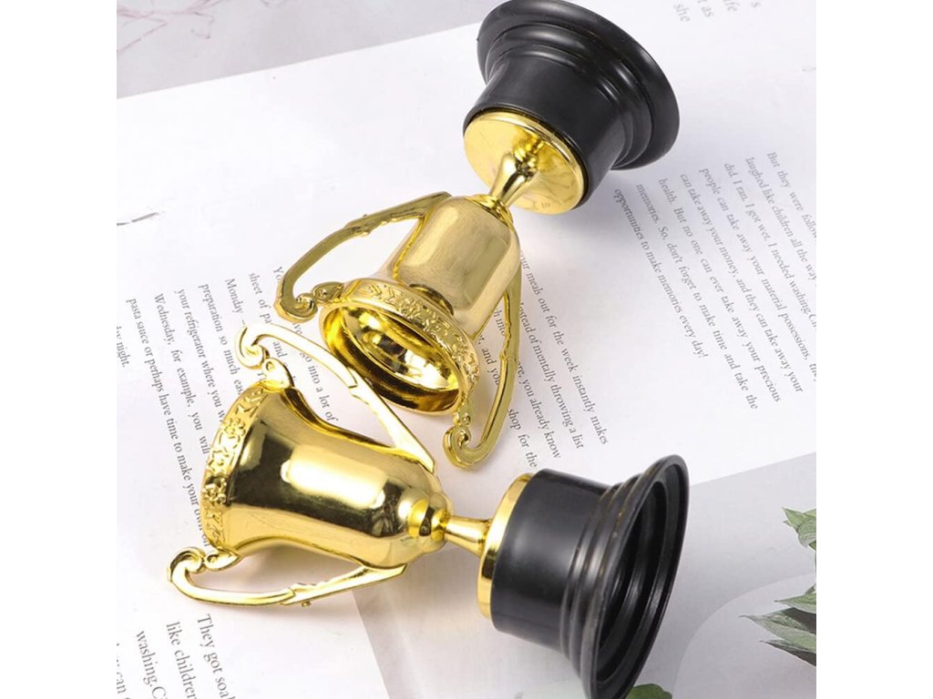 Mini trofeje, zlaté pohárky jsou perfektním symbolem úspěchu a představují tvrdou práci, která je věnována úsilí žáka nebo jeho příbuzných.