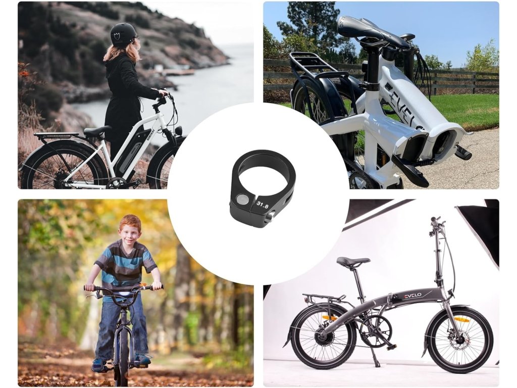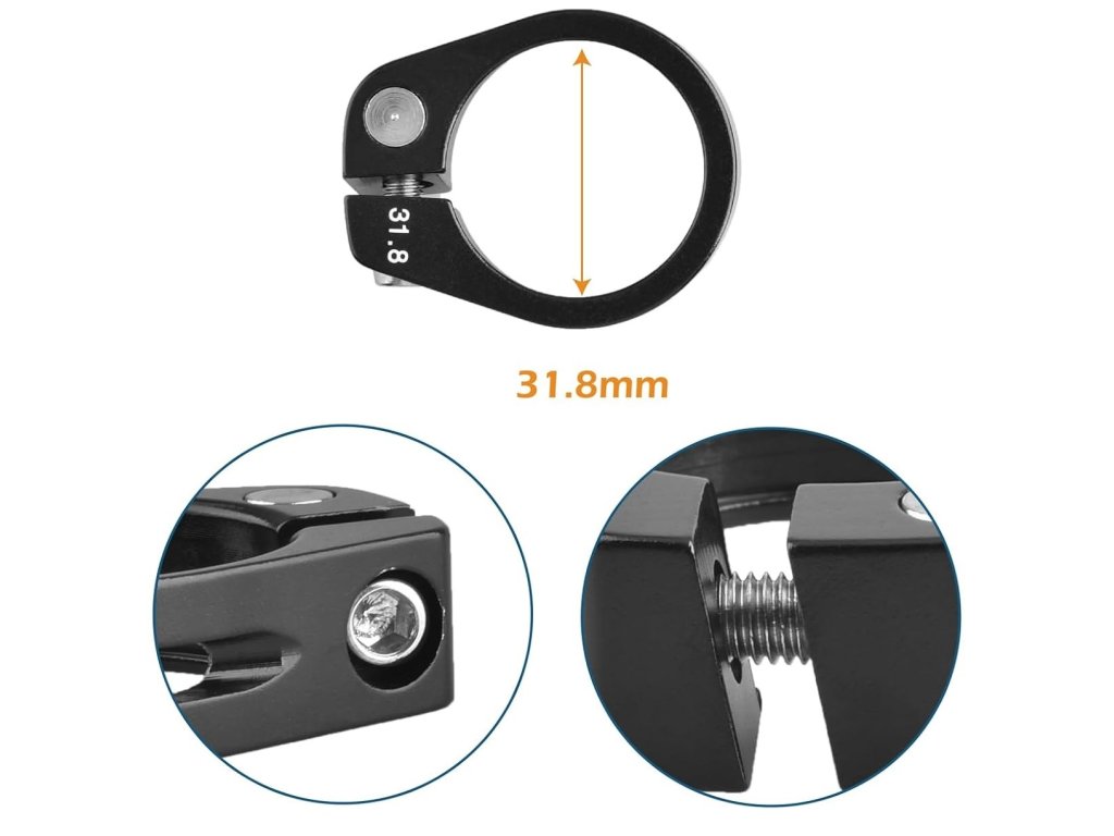 Příslušenství nebo náhradní díl pro upevnění sedla jízdního kola. Vnitřní průměr objímky sedlovky je 31,8 mm, vhodná pro průměry sedlové trubky 27,2/28,6 mm.