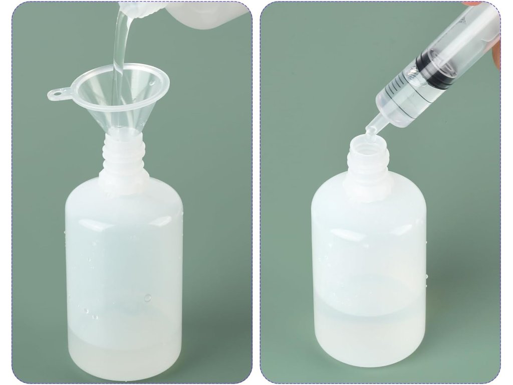 Prázdné láhve jsou vyrobeny z kvalitního zesíleného PE, uzávěr je z kvalitního polypropylenu, odolný proti opotřebení a má dlouhou životnost, má dobrou měkkost, snadno se stlačuje, snadno se naplní a dávkuje, opakovaně použitelná.