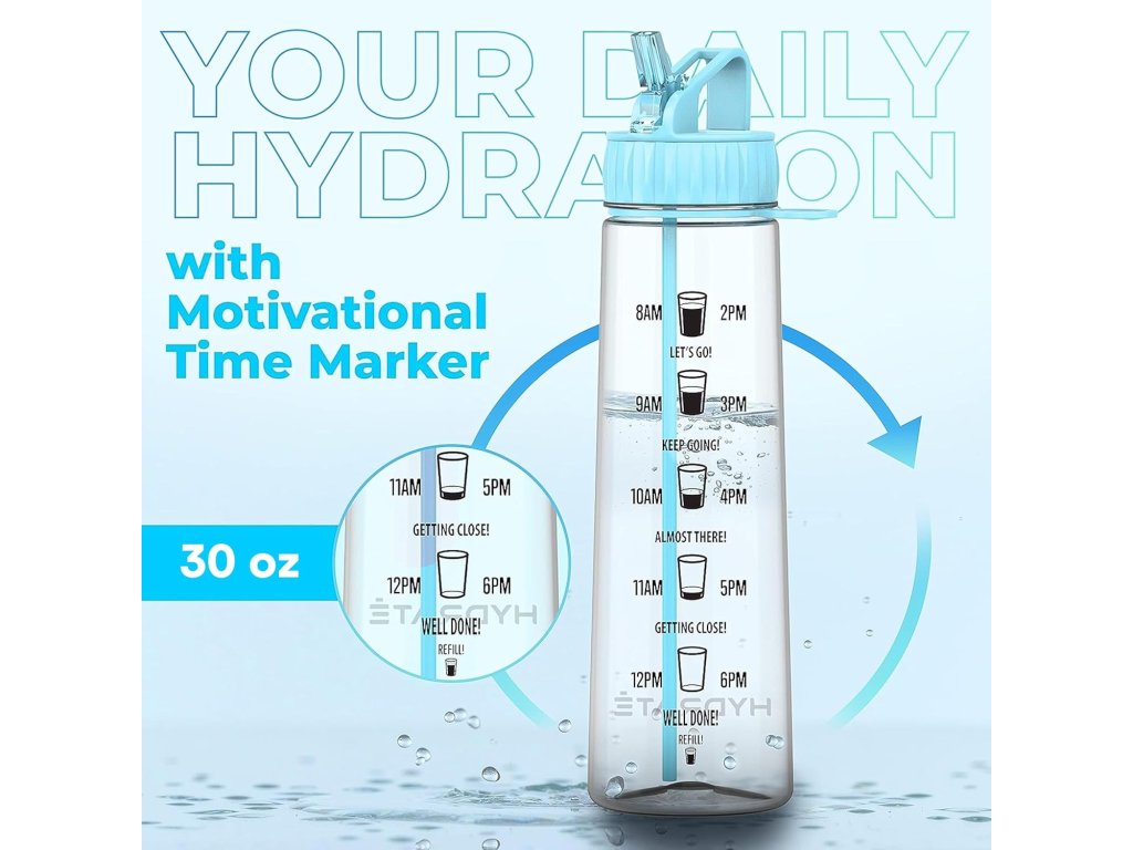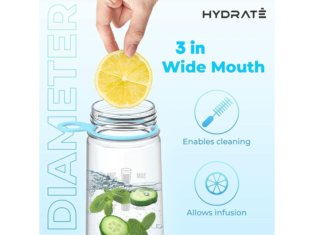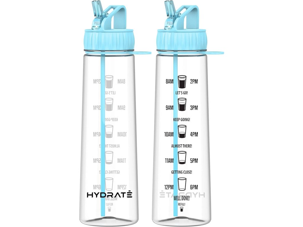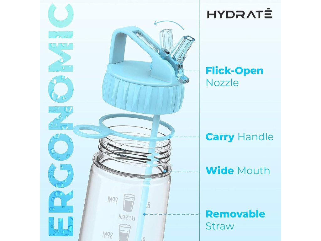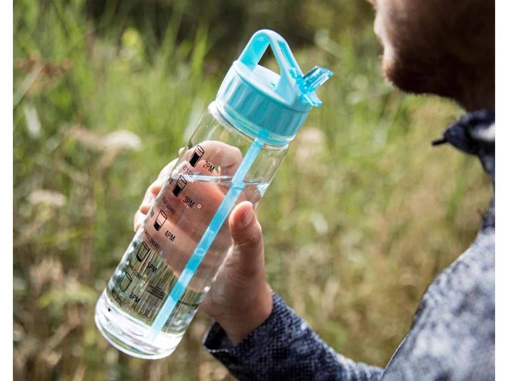 Může být obtížné dosáhnout denního množství vody. Proto je láhev Hydrate opatřená časovými značkami, které vám pomohou sledovat příjem vody a které vás motivují k dosažení vašich každodenních cílů.