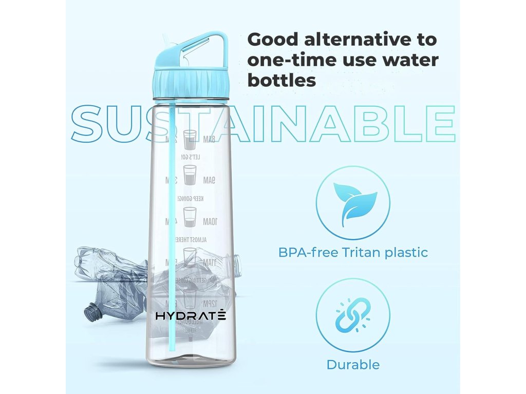 HYDRATE Láhev na pití 900ml s časovými značkami, bez BPA, Tritan, modrá
