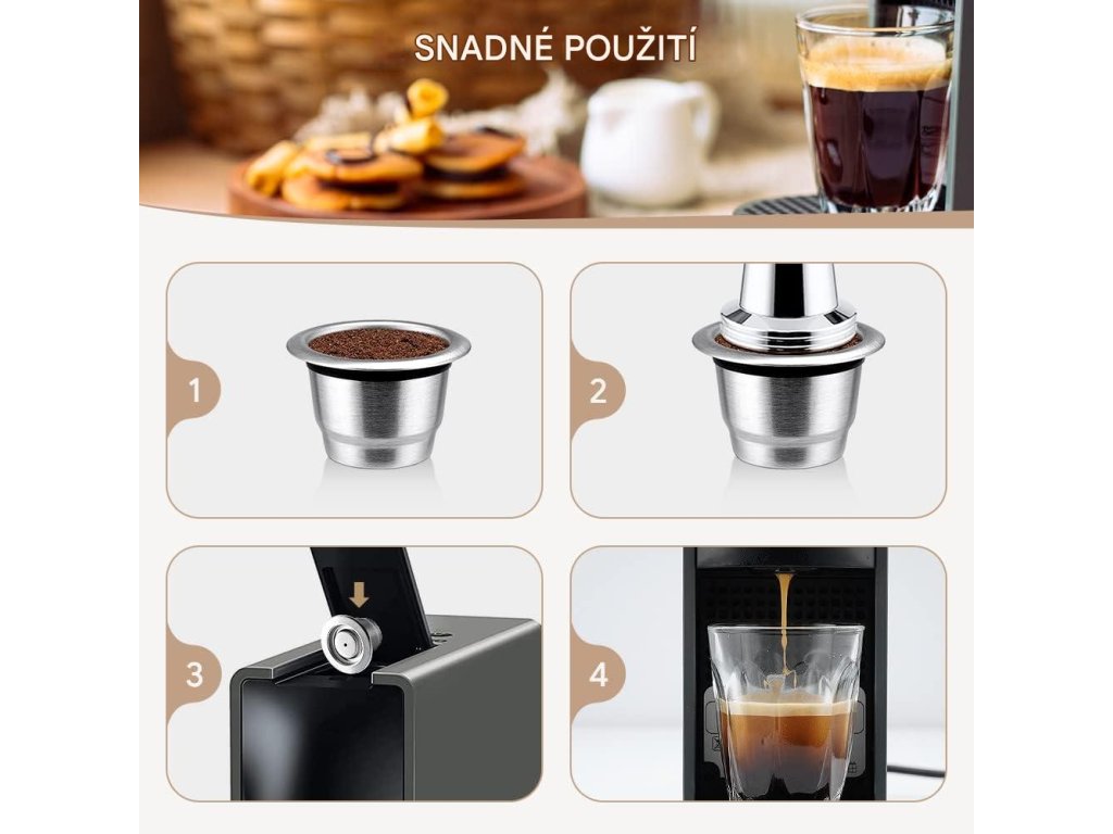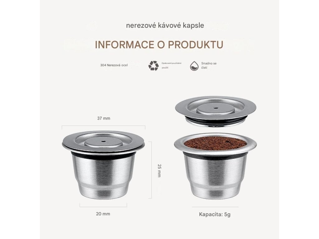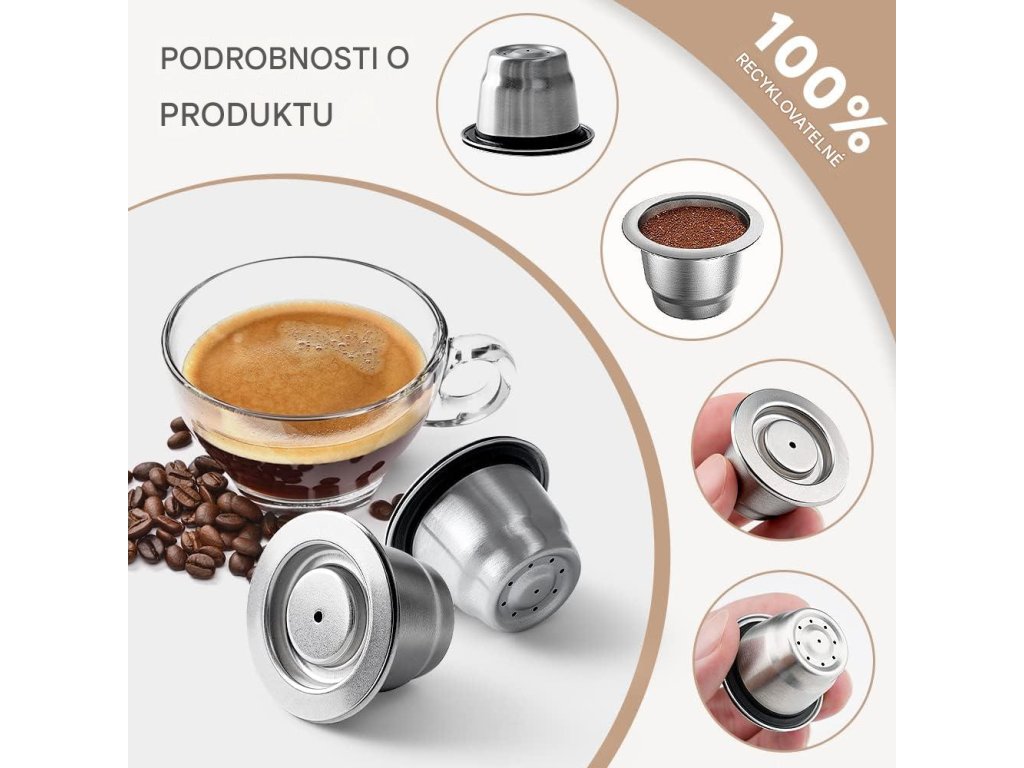 Vysoká kvalita, z ušlechtilé oceli, snadné čištění, neomezené použití, ekologická, nerezová ocel, opakovaně použitelné kapsle.