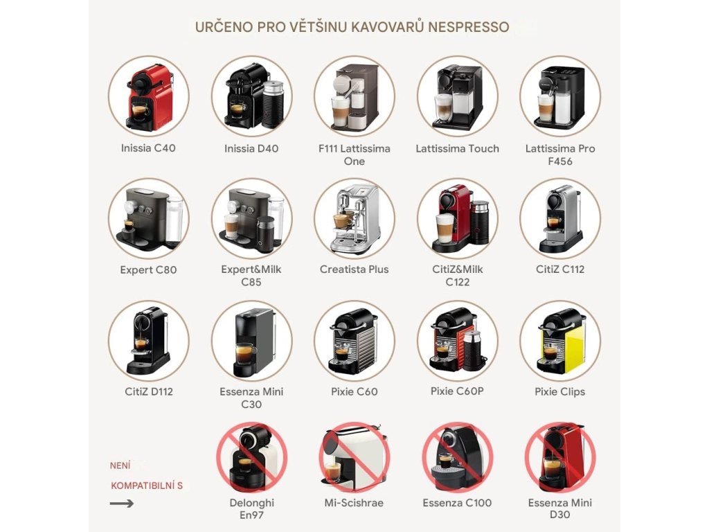 Opakovaně použitelné kávové kapsle, které jsou kompatibilní s většinou strojů Nespresso, ale ne všemi (zkontrolujte kávovary na obrázku!!!).