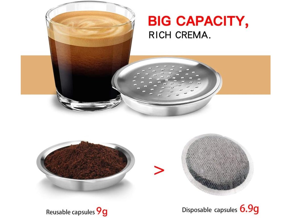 Doplnitelné kávové kapsle jsou z ušlechtilé oceli, bezpečné a trvanlivé, opakovaně použitelné a šetrné k životnímu prostředí.