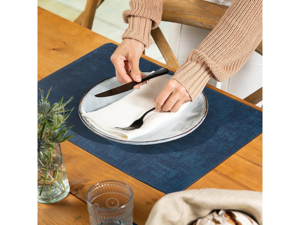 Prostírání z umělé kůže jsou pratelná, neblednou a nebarví se. Otřete je vlhkým hadříkem nebo opláchněte vodou a nechte uschnout na vzduchu (není možné prát v pračce).