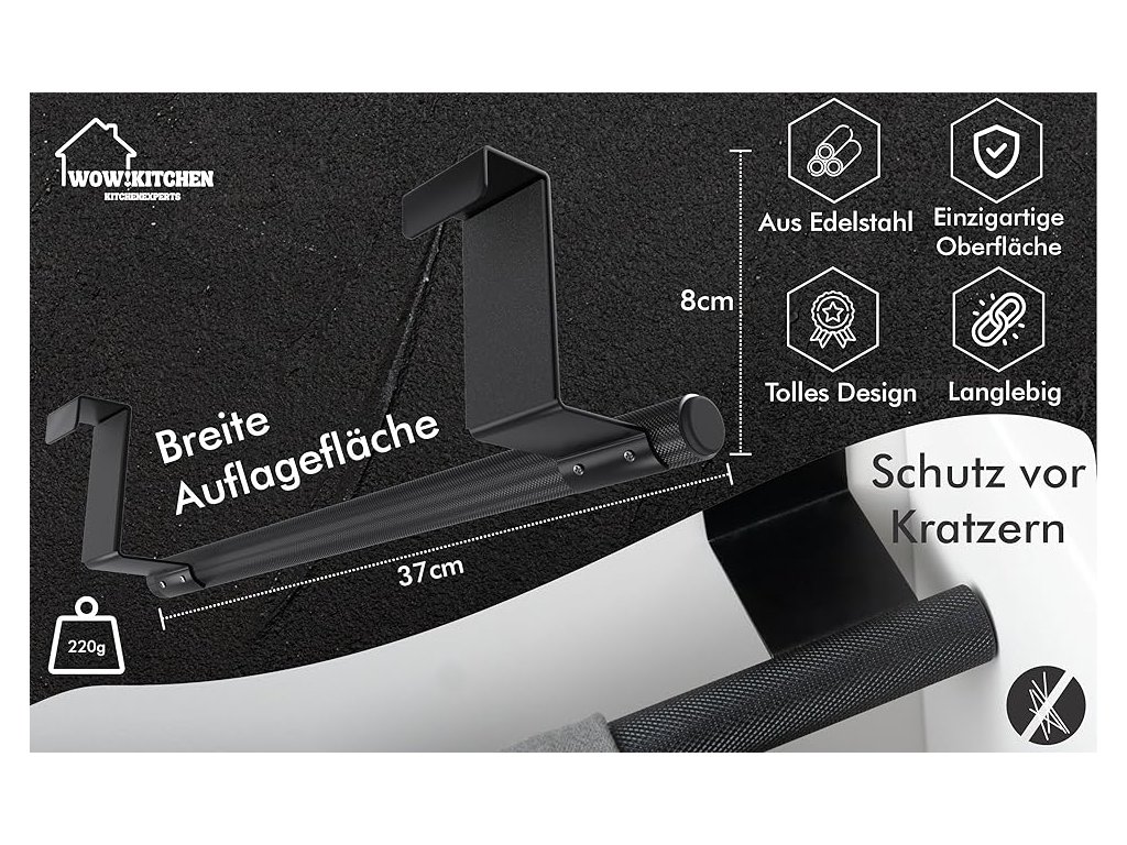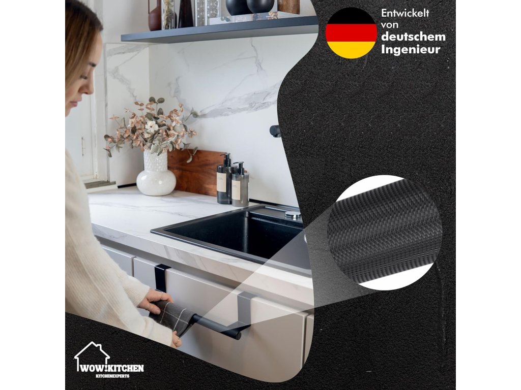 Wow!Kitchen® Držák utěrky k zavěšení do kuchyně, ručníku do koupelny, protiskluzový, černý