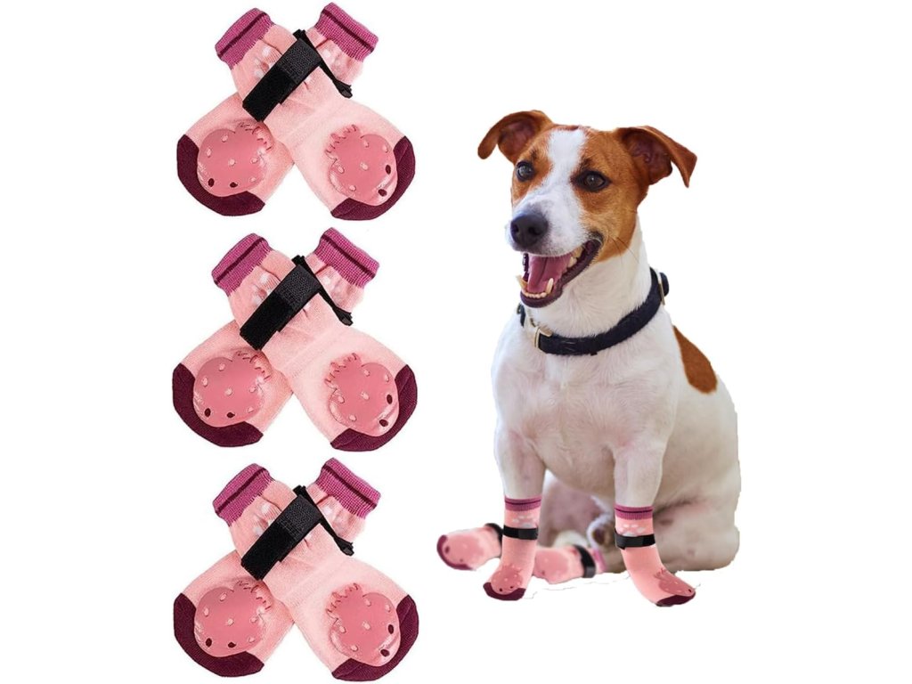 3 páry protiskluzových ponožek pro psy, růžové, velikost L