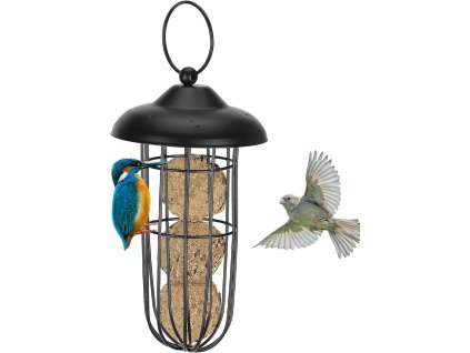 Ptačí krmítko s kroužkem nahoře, snadné zavěšení. Můžete bez problémů krmit domácí zvířata nebo divoké ptáky a sledovat, jak jedí.