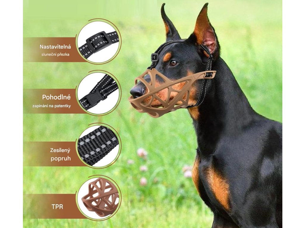 Prodyšný design umožňuje normálně dýchat a jíst a současně chrání majitele před agresivním chováním.