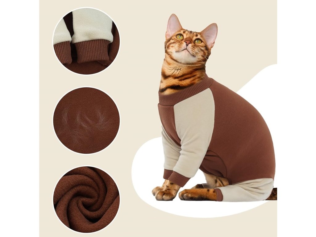 Kočičí oblečení pro kočky, koťata, ideální pro Sphynx bez srsti, kávové