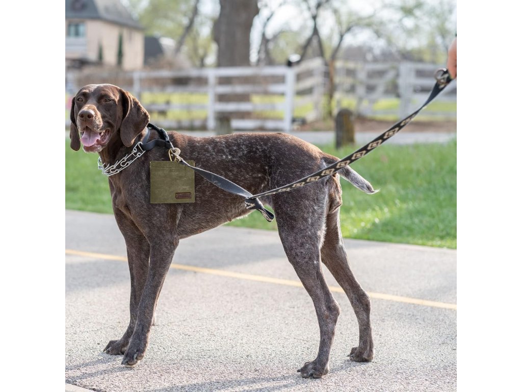 Karabina na tašce umožňuje pohodlné připevnění tašky na pamlsky ke kalhotám, batohu nebo výcvikovému vodítku, takže máte volné ruce pro výcvik.
