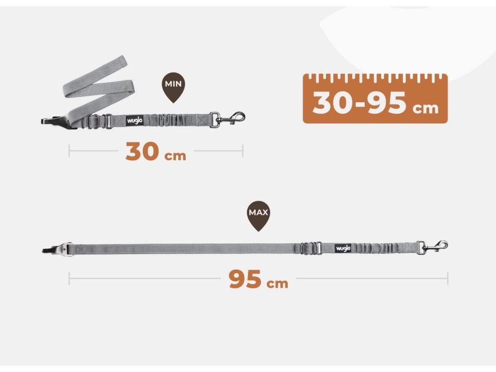Wuglo 30-95cm bezpečnostní pás pro psy do auta, autopostroj, šedý